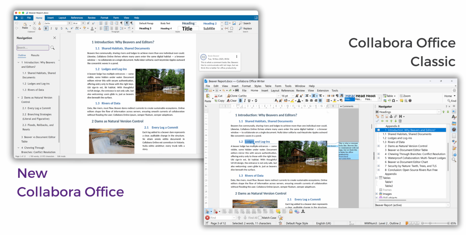 A Classic és az új Collabora Office közötti főbb különbségek áttekintése