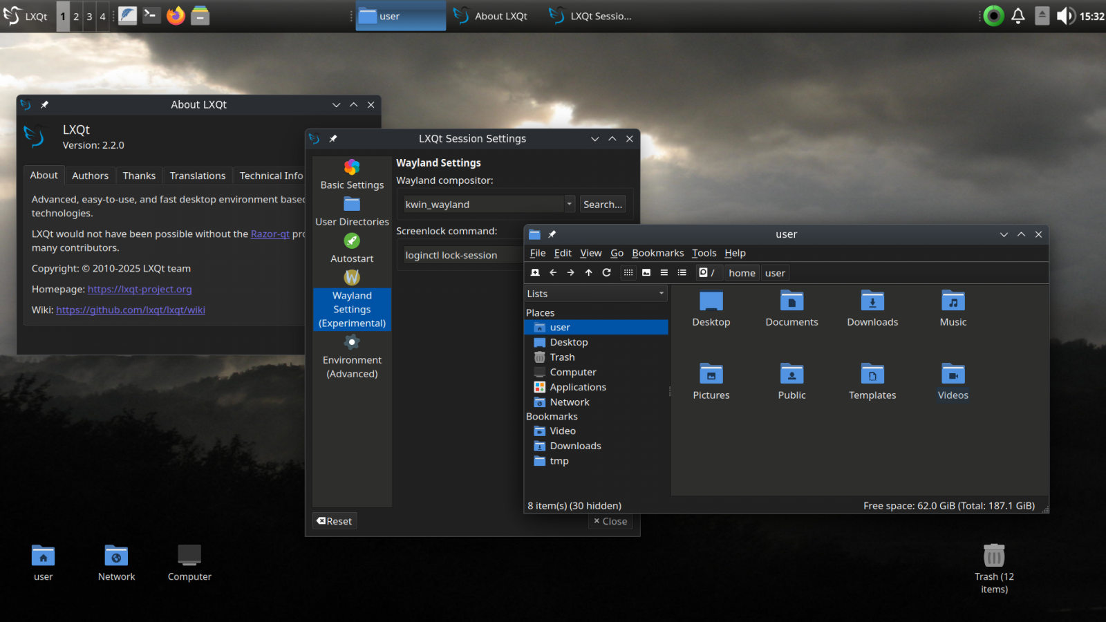 • natív systemd szolgáltatás az LXQt komponensek indításához.