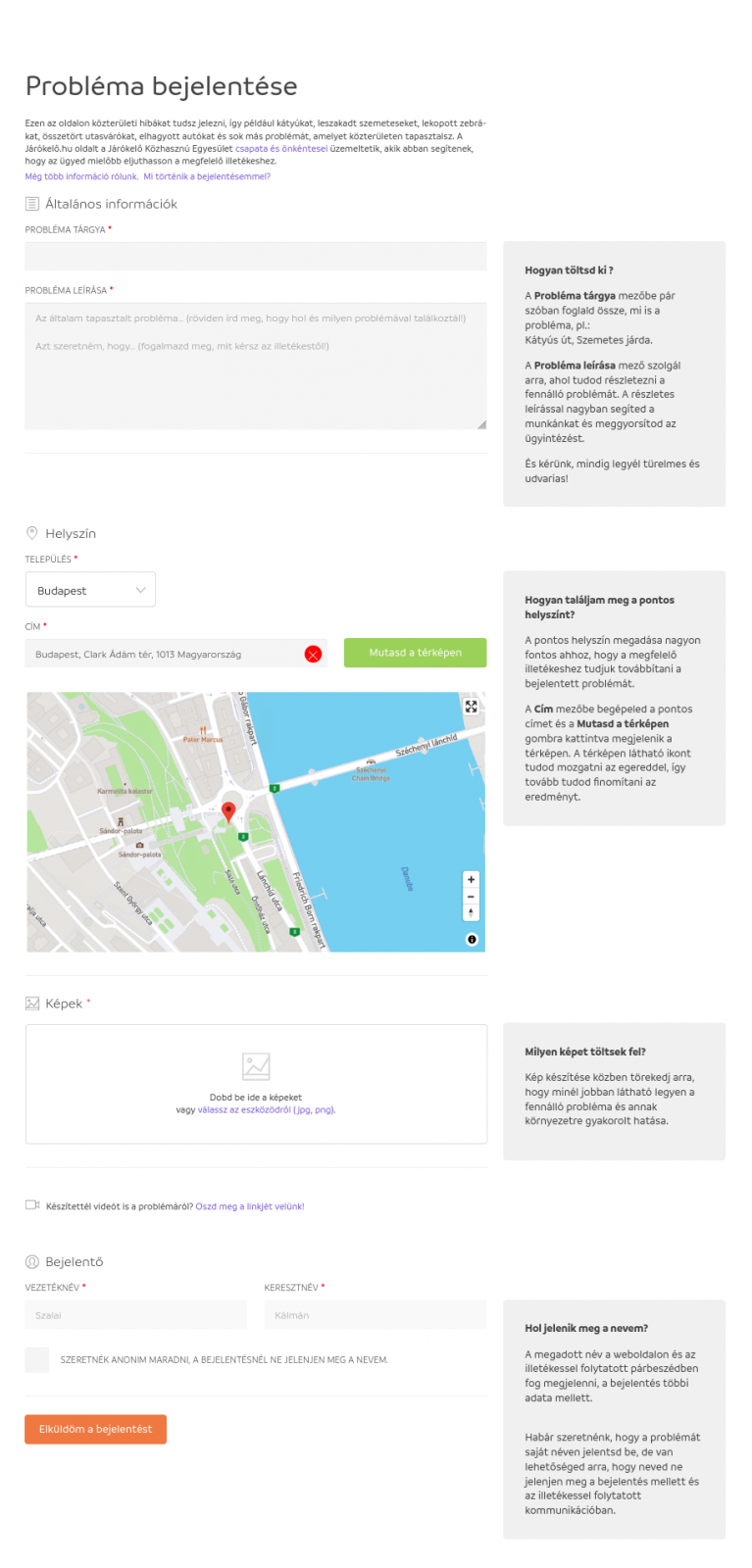 Fogadd örökbe a saját utcádat, a környékedet, azt az útvonalat, ahol nap mint nap közlekedsz. Fotózd le, jelöld meg a térképen, írd le röviden a problémát, és küldd be a Járókelőn. Egyetlen bejelentés is számít – sok együtt pedig valódi változást hozhat.
