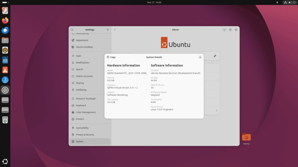 A motorháztető alatt a Resolute Raccoon a Linux kernel 7.0-t, a systemd 259-et és a apt 3.2 csomagkezelőt szállítja, valamint a Mesa 26.0 grafikus stack-et használja. A Canonical azt is kiemeli, hogy a systemd-ből kikerült a cgroup v1 támogatása. Szerveres és virtualizációs oldalon a kiadás része az OpenSSH 10.2, a virtualizációs stack AMD SEV-SNP támogatása, az Intel TDX host támogatás, valamint a real-time kernel, amely most már a fő archive-ban is elérhető, nem csak Ubuntu Pro-n keresztül.