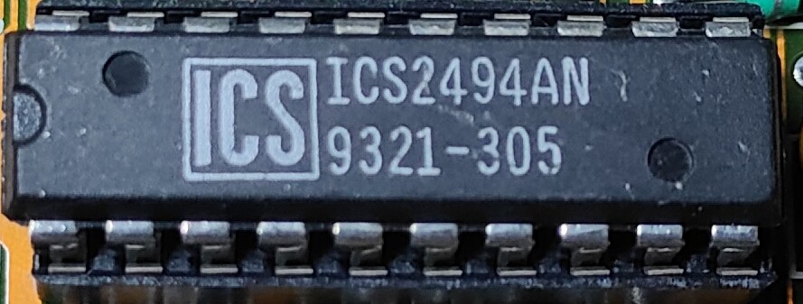 Ez az alkatrész az úgynevezett video timing generator, vagyis videóidőzítő áramkör. Feladata a képszinkronizáláshoz szükséges órajelek és időzítések előállítása, amelyek biztosítják, hogy a monitor pontosan akkor és úgy kapja meg a jeleket, ahogyan azt a szabványok megkövetelik. E chipek legjelentősebb gyártója a ’80-as és ’90-es években az Integrated Circuit Systems (ICS) volt.